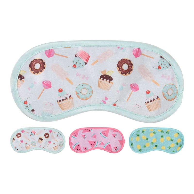 Masque de sommeil divers modèles. Satin avec élastique, taille 19x9cm. 3 designs pastèque, glace, ananas