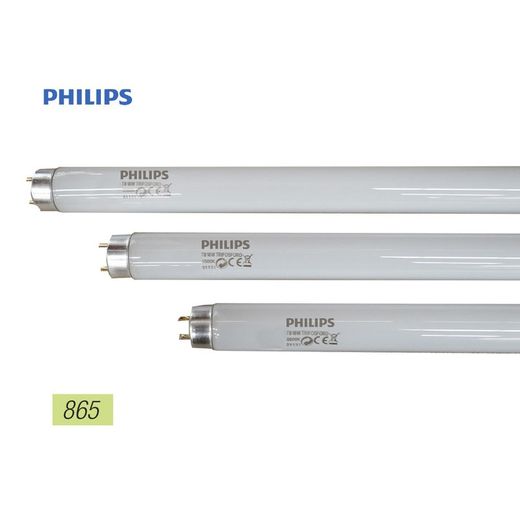 Modèle tube fluorescent triphosphore 18w 865k : lumière froide t8. Angle d'ouverture : 360°. Luminosité : 1350lm. Mesure : ø2,6x59cm (diamètre/longueur) philips