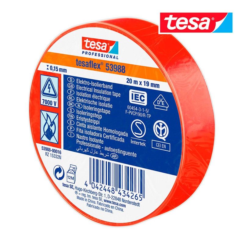 Ruban isolant homologué rouge 20m x 19mm 53988 tesa