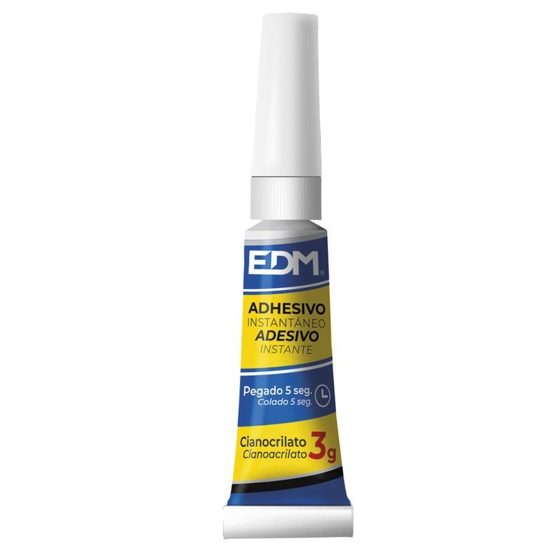 S. de. Cyanoacrylate 3g blister edm. Adhésif instantané haute densité, colle les plastiques, les caoutchoucs, les métaux et autres matériaux en quelques secondes.
