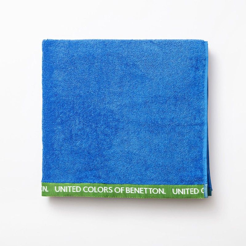 Dimensions serviette de plage : 160x90cm (largeur/profondeur) 380g/m² 100% coton velours bleu arc-en-ciel Benetton