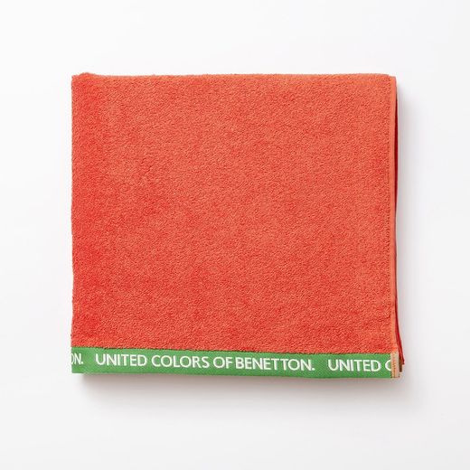 Dimensions serviette de plage : 160x90cm (largeur/profondeur) 380g/m² 100% coton velours rouge arc-en-ciel Benetton